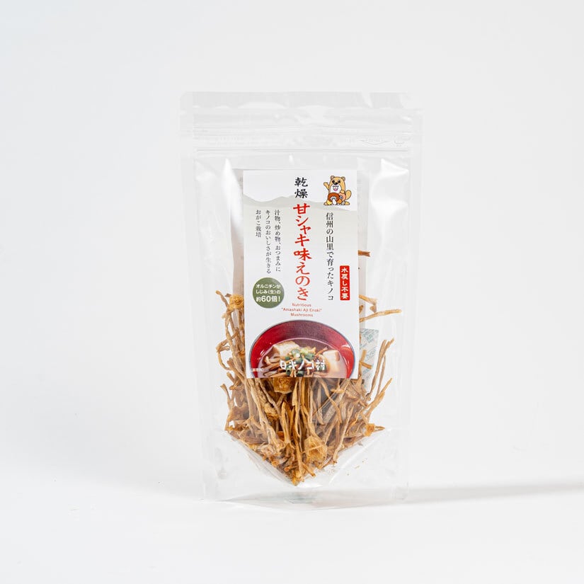水戻し不要で、野菜炒めやお味噌汁など、お手軽にキノコ料理が楽しめます。オルニチン含有量はしじみ(生)の約60倍で、健康づくりの食習慣にもお勧めです。採りたてを農場で乾燥し、キノコのおいしさと滋養分をぎゅっと詰め込んでお届けしています。お求めいただきやすい15gパックです。
