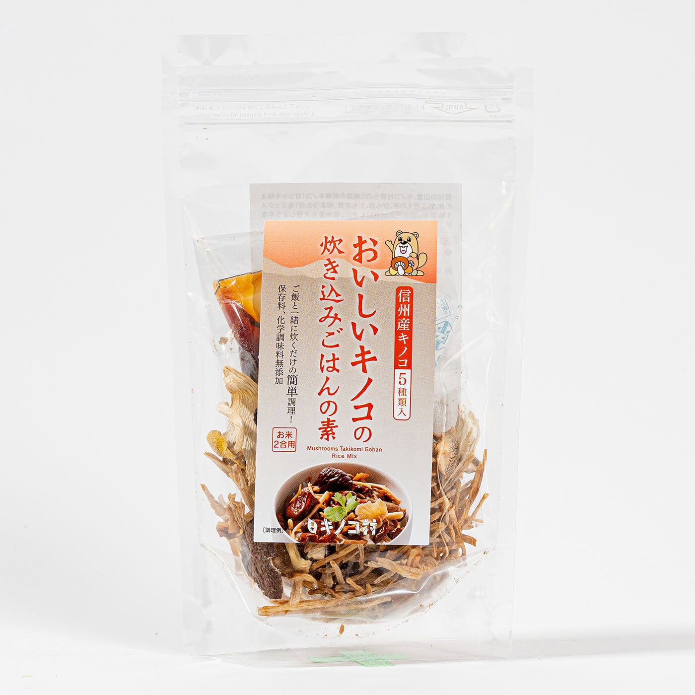 乾燥きのこだから旨みあふれる炊き込みご飯が作れます。スーパーではあまり見かけないキノコ5種類の食感も香りも楽しめる炊き込みご飯の素です。