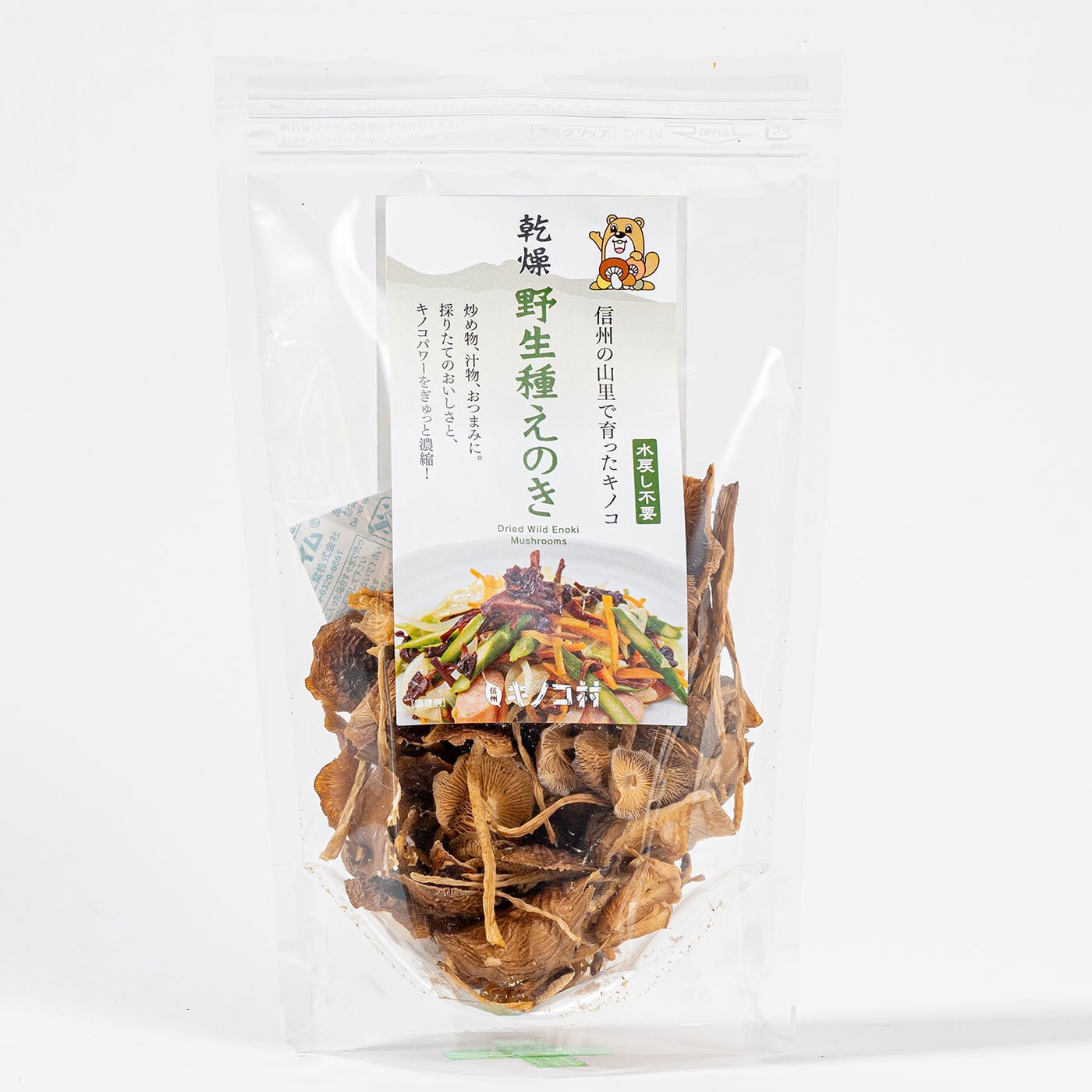 山に生える野生種えのき(原種えのき)を、特長をそのままに活かして栽培化しました。乾燥品でもお味噌汁やスープ入れるだけで、生鮮品と同じく、特有のぬめりのある食感や歯ごたえが楽しめます。ベーターグルカンを多く含んでいます。